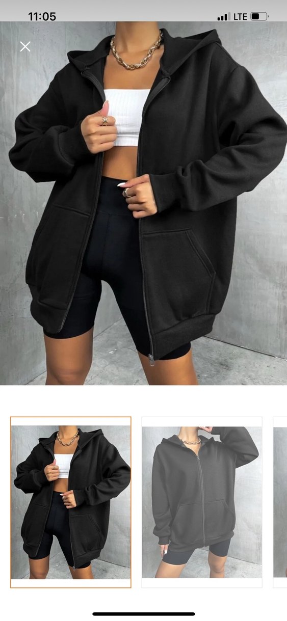 Siyah mini ceket, yüksek yakalı ve uzun kolludur. Oversize kesim, fermuarlı kapama ve yumuşak, sıcak kumaştan üretilmiştir. Hiç kullanılmadı