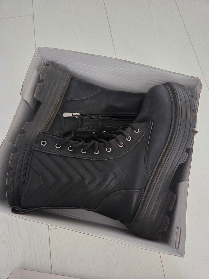 Siyah Fermuarlı Platform Topuklu Biker Bot