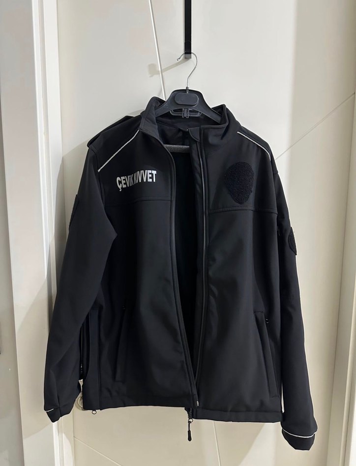 Siyah renkli, fermuarlı, uzun kollu ve bisiklet yaka Polıs ceketi Yumuşak ve sıcak kumaştan, baskılı desene sahip, dış mekan ve street wear tarzına uygun.