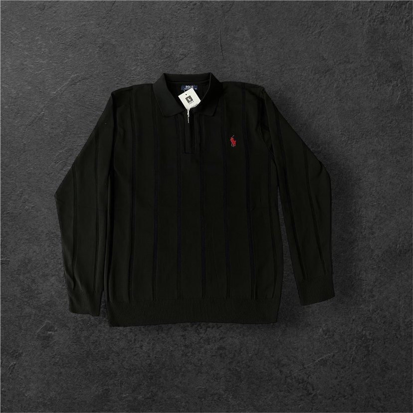 Siyah Fermuarlı Polo Yaka Erkek Kazak