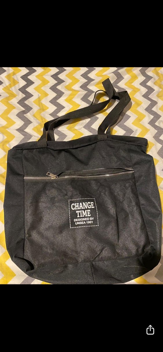 Siyah renkli, fermuarlı ve baskılı tasarıma sahip kadın çantası. Sentetik kumaştan üretilmiş, sokak tarzı için uygun.