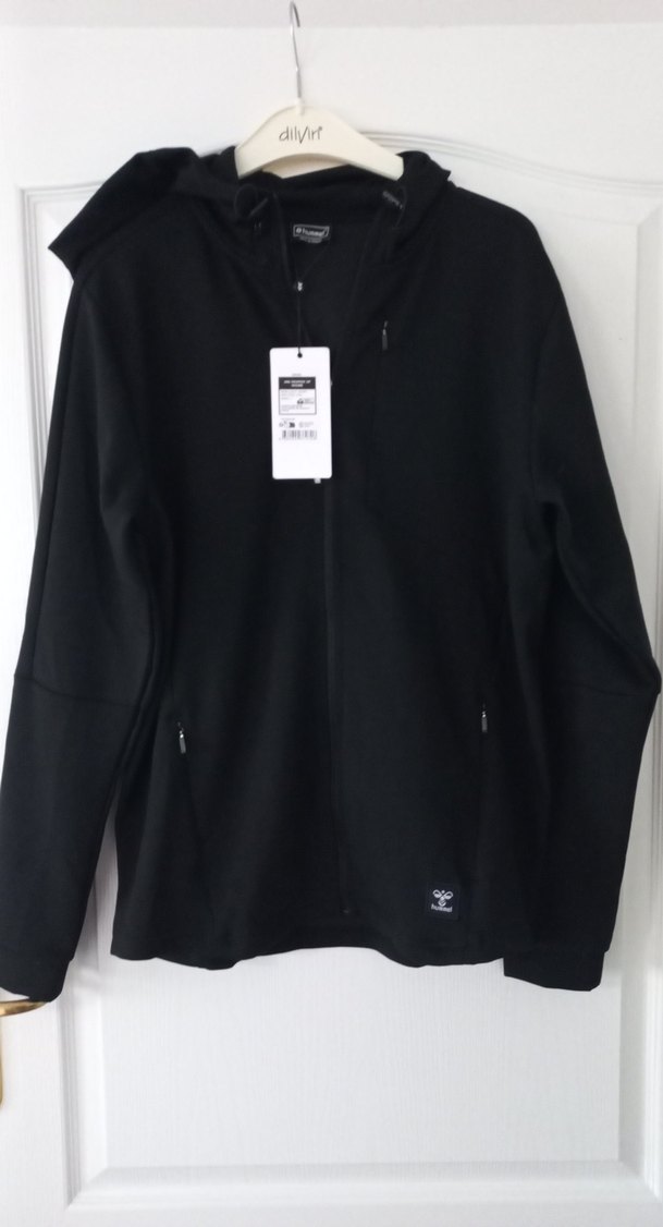 Siyah, fermuarlı, uzun kollu, bisiklet yaka ve normal boyda, rahat ve sıcak dokulu spor ceketi.