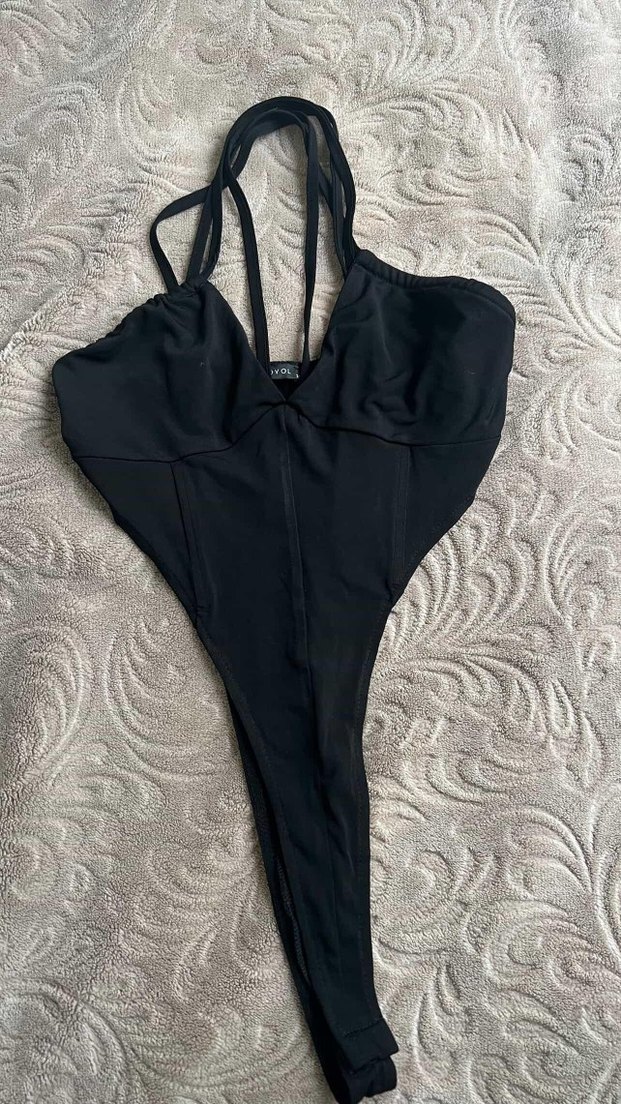 Siyah, fermuarlı ve strappy askılı kadın mayo. Midi uzunlukta, fit kesim ve gotik athleisure tarzında.