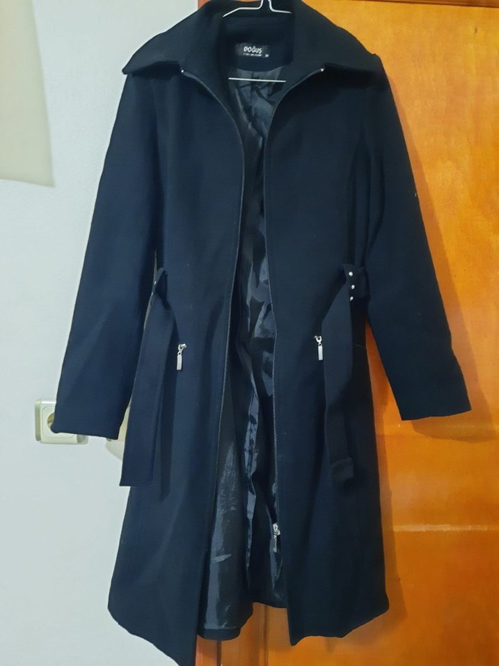 Siyah uzun kaban, fermuarlı kapama ve iki fermuarlı yan cebi vardır. Yumuşak astarlı ve klasik yakalıdır. Bel kemeriyle şık bir görünüm sağlar.