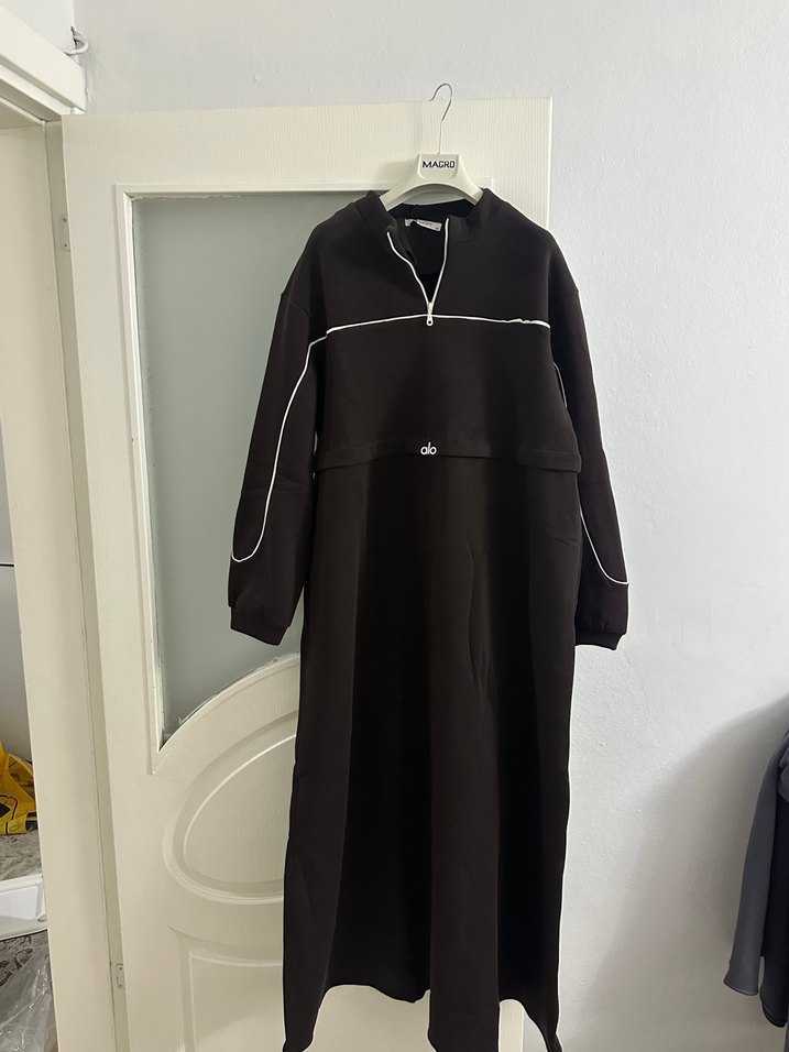Siyah uzun elbise, uzun kollu ve yuvarlak yaka olup, bol kesimi ve fermuarlı detayıyla dikkat çeker. Yumuşak ve sıcak kumaştan üretilmiştir, gündelik kullanıma uygundur. Bedenleri mevcuttur stoklu ürün iki renk seçeneğiyle imalattan