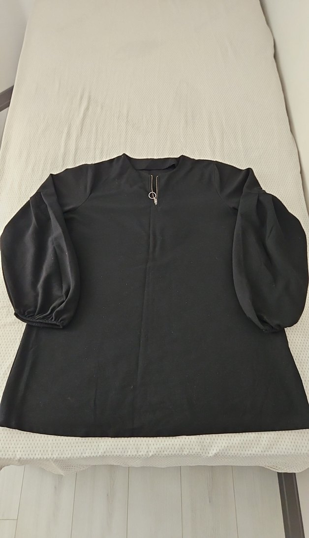 Siyah, fermuarlı ve uzun kollu bluz, yumuşak keten kumaştan rahat bir kullanım sağlar. Minimalist ve gotik tarzda, sade ve temel gardıroplar için uygundur. 4XL