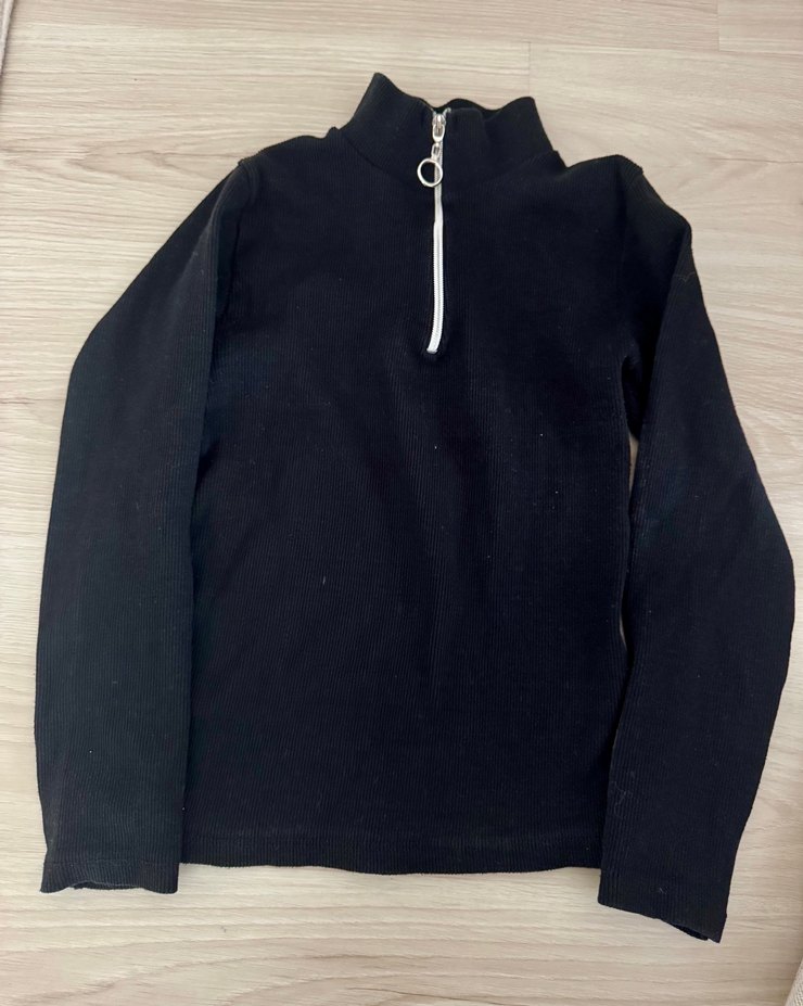 Fermuarlı yarım boğazlı, uzun kollu, siyah renkli, vücuda oturan kadın kazak. Yumuşak ve sıcak dokusuyla günlük kullanıma uygundur.