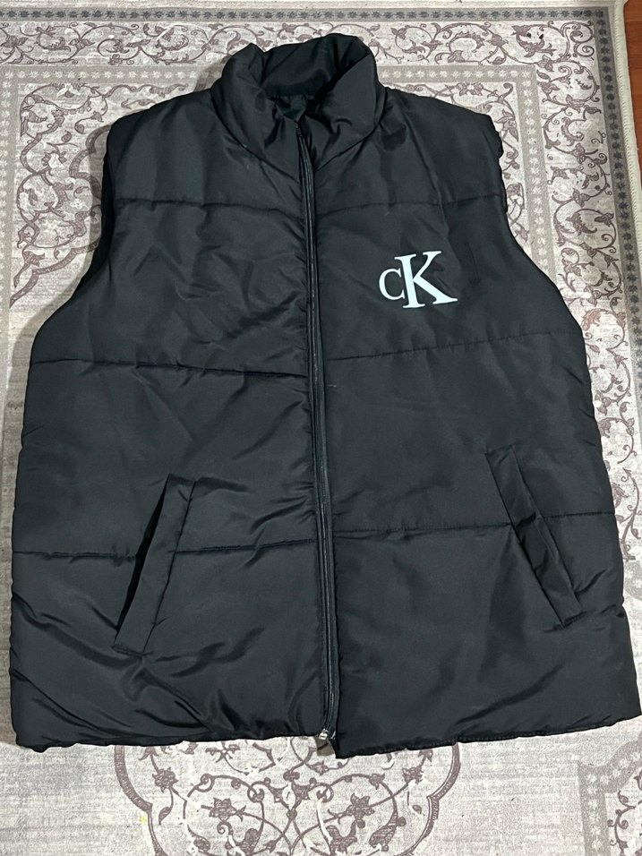 Siyah, fermuarlı, yakalı, kolsuz yelek. Rahat kesimi ve göğsündeki cK logosu ile günlük ve konforlu bir tarz sunar.