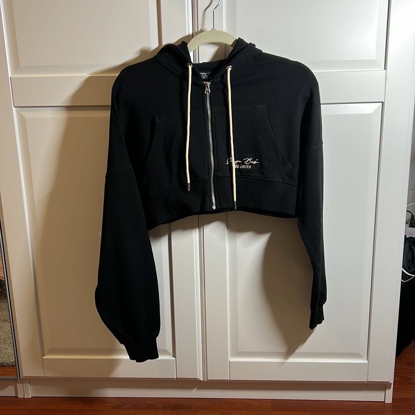 Siyah renkli, yüksek yakalı ve ön fermuarlı sweatshirt. Uzun kollu, vücuda oturan kesimi ve baskılı detayları vardır. Yumuşak ve sıcak kumaştan üretilmiştir.