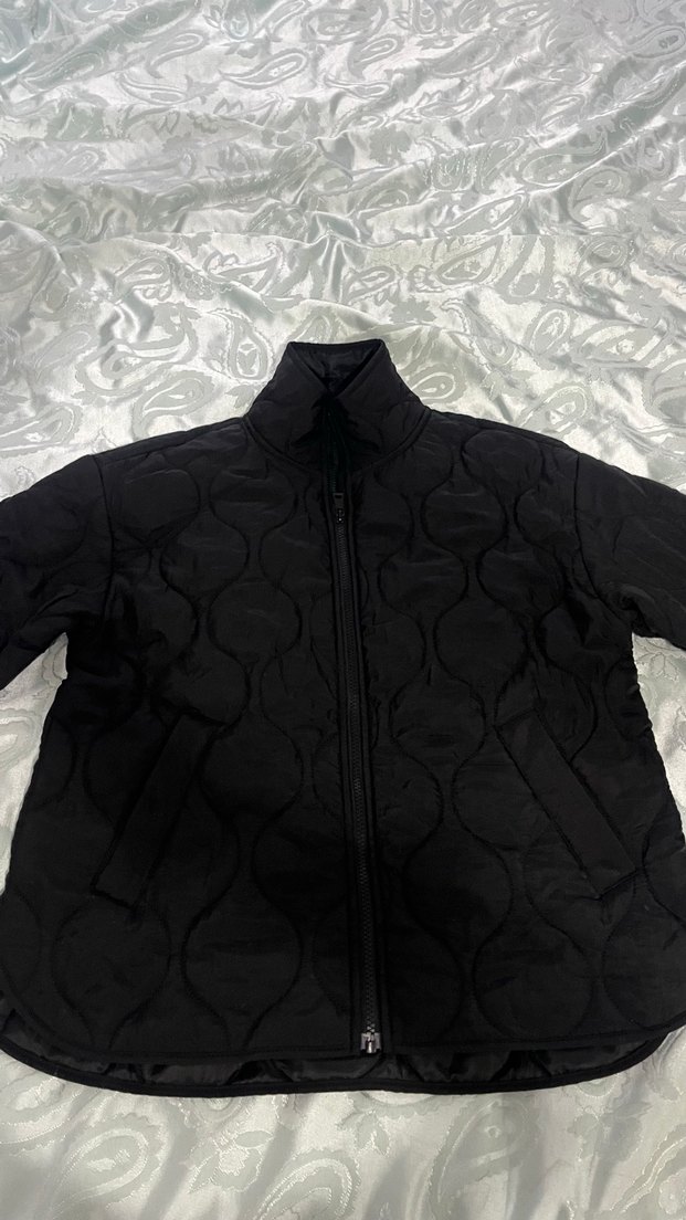 Bu siyah, fermuarlı ve yüksek yakalı kadın ceketi, uzun kollu ve midi boydadır. Yumuşak ve sıcak bir kumaştan üretilmiştir.