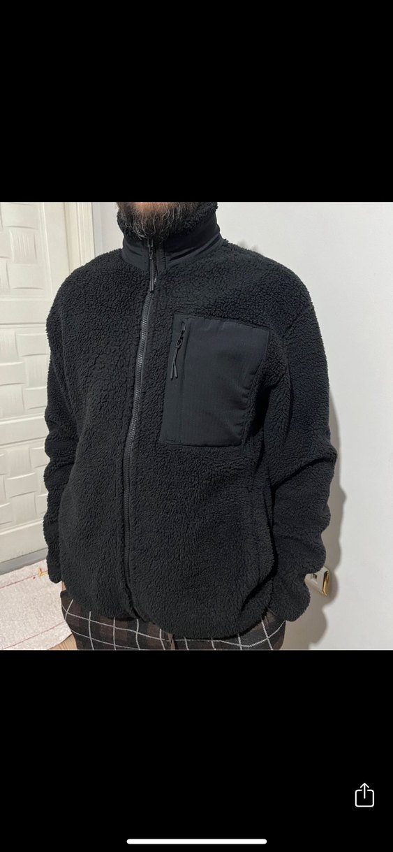 Yumuşak ve rahat kumaştan yapılmış, siyah, fermuarlı, yüksek yakalı ve fitted kesim kadın ceketi. Fermuarlı göğüs cebi ve uzun kolludur.