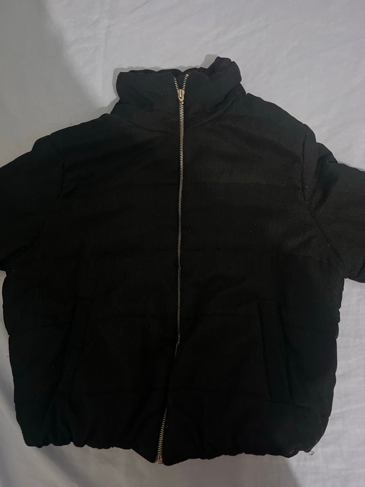 Siyah, fermuarlı, yüksek yakalı, uzun kollu, normal midi boyda, yumuşak ve sıcak kadifemsi kumaştan kadın mont. Sokak stiline uygun, dar kesim.