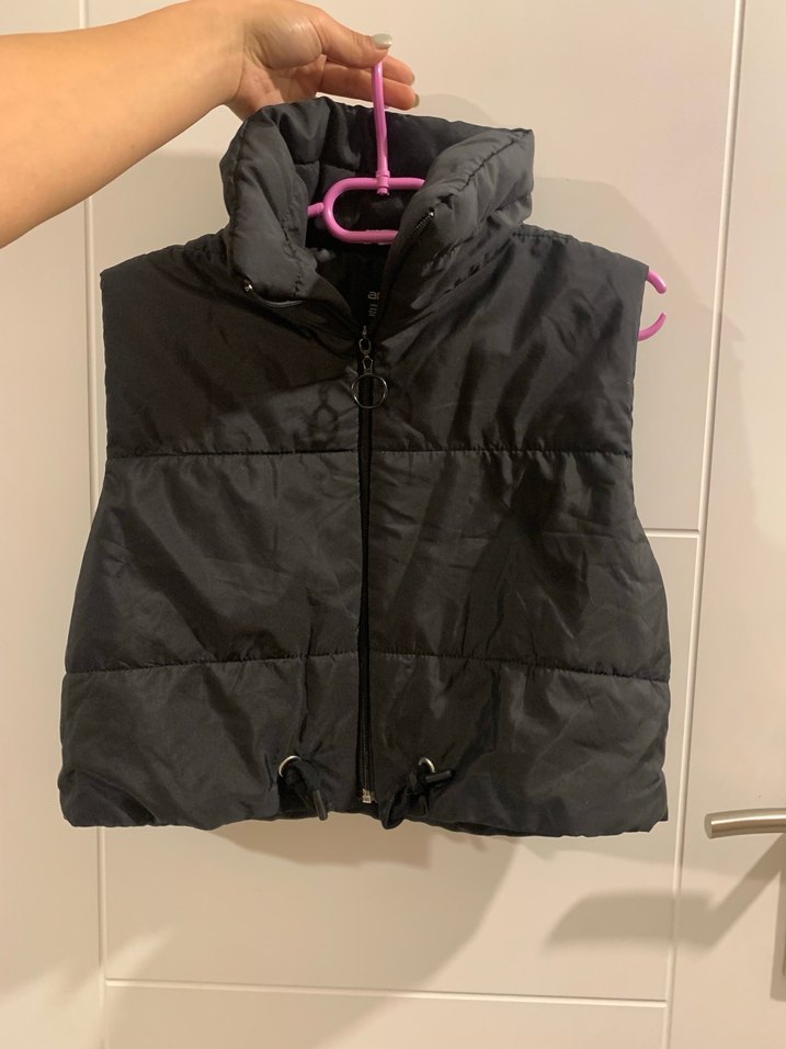 Siyah, fermuarlı, yüksek yakalı ve kolsuz bu kadın yeleği, dar kesim ve midi boydadır. Soft ve sıcak kumaşıyla dış mekan ve sokak stili için uygundur.