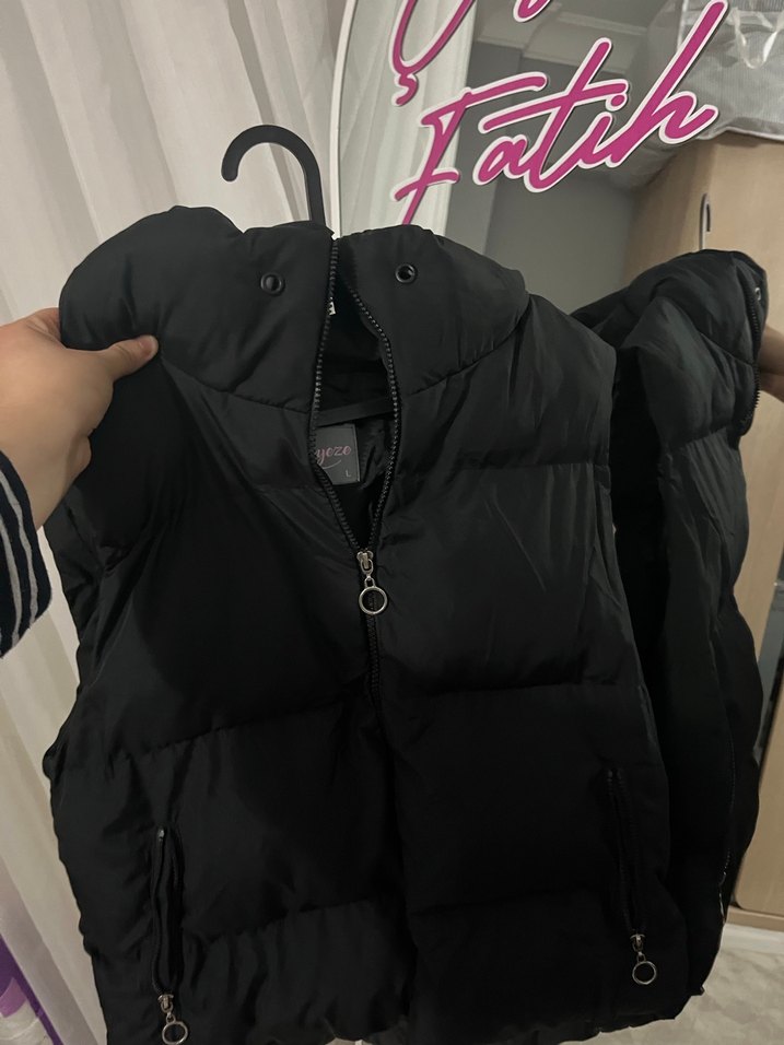 Yumuşak ve sıcak kumaştan, siyah renkte, fermuarlı ve yüksek yakalı, midi boy, fitted kesim kadın yelek.