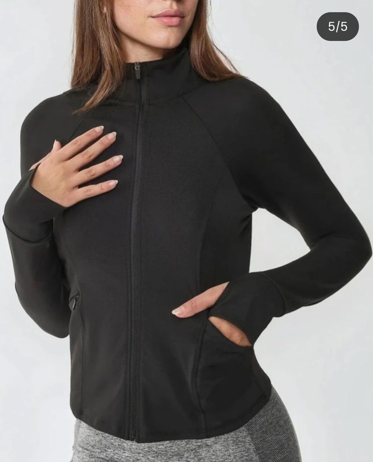 Siyah, fermuarlı, yüksek yakalı ve uzun kollu spor ceket. Parmak delikleriyle rahat kullanım sağlar. Yumuşak ve sıcak kumaştan üretilmiştir. 450te