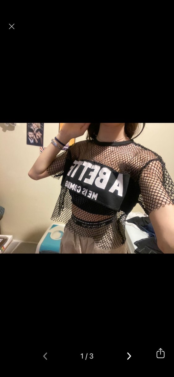 Siyah, straplez ve askılı kollu, file detaylı ve bantlı crop top. Baskılı deseni ve grunge punk tarzıyla günlük kullanıma uygun.