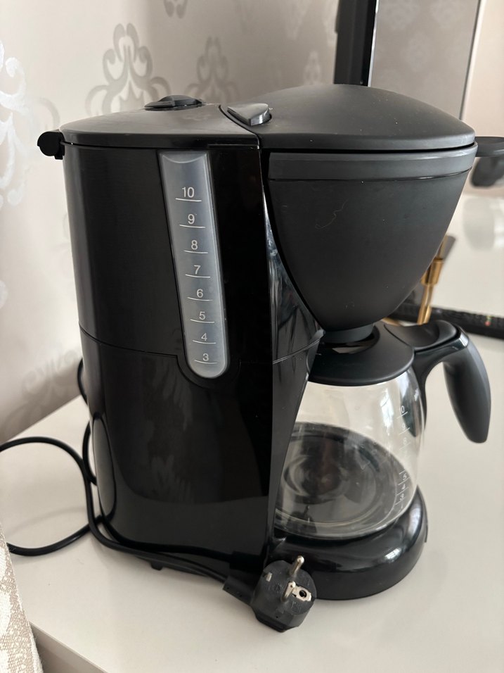 Siyah renkte, 10 fincan kapasiteli, su seviyesi göstergeli cam demliği olan kahve makinesi. ☕ Düzenli kullanamadığım için boşa durmasın istedim. ✔️ Orijinal kaliteli Braun ürün ✔️ Çalışması sorunsuz ✔️ Hijyenik ve bakımlı ✔️ Hemen gönderime hazır Fiyat makuldür, ufak pazarlık olabilir.