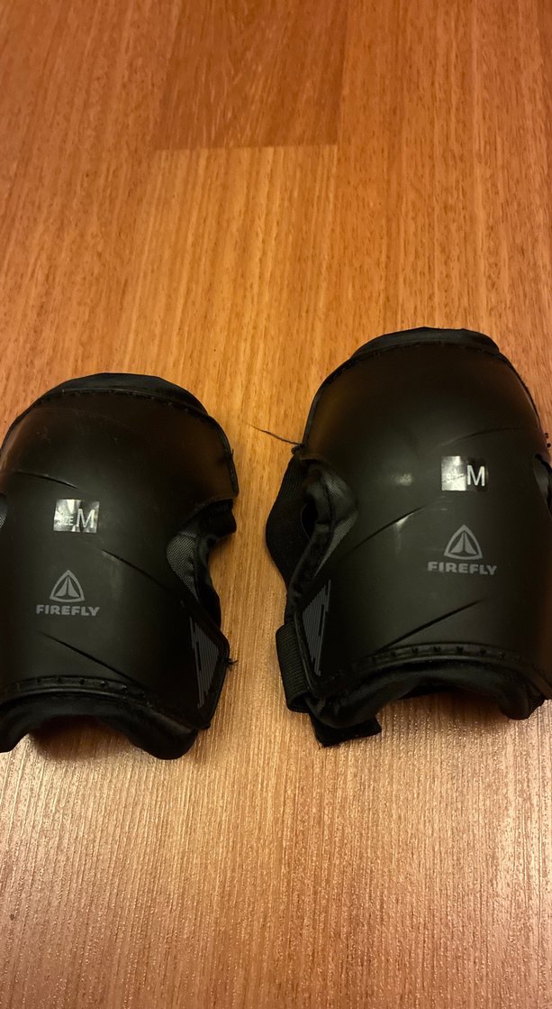 Siyah Firefly motosiklet dizlikleri, kauçuk malzeme ve baskılı detaylarla. Velcro kayışlar ile sabitlenir. Beden M. ️