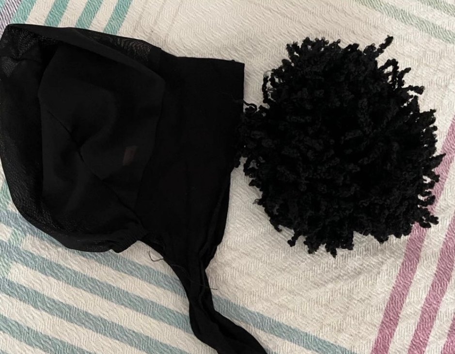 Penye kumaştan siyah kadın bone, fırfır detaylıdır. Arkası tül detaylı düşük topuza uygun olduğu için sadece iki defa kullandım yeniden farksızdır .