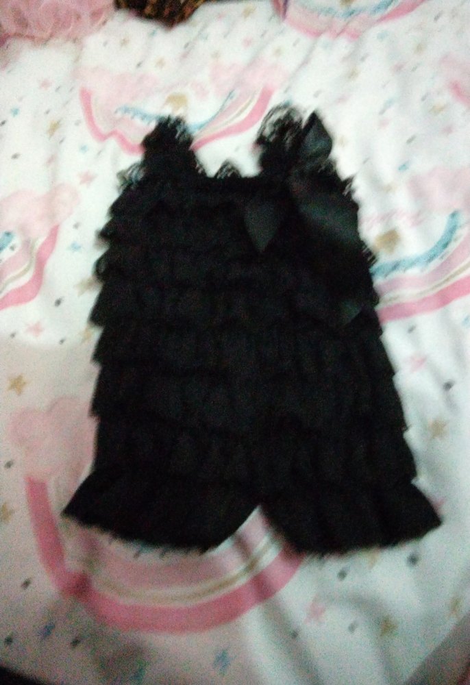 Yumuşak ve rahat kumaştan, katmanlı fırfır detaylı siyah bebek kız tulumu.