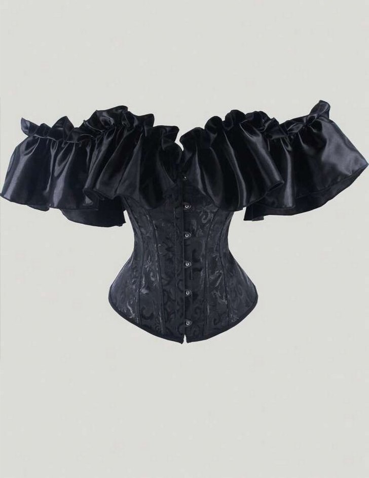 Siyah Fırfırlı Goth Straplez Büstiyer