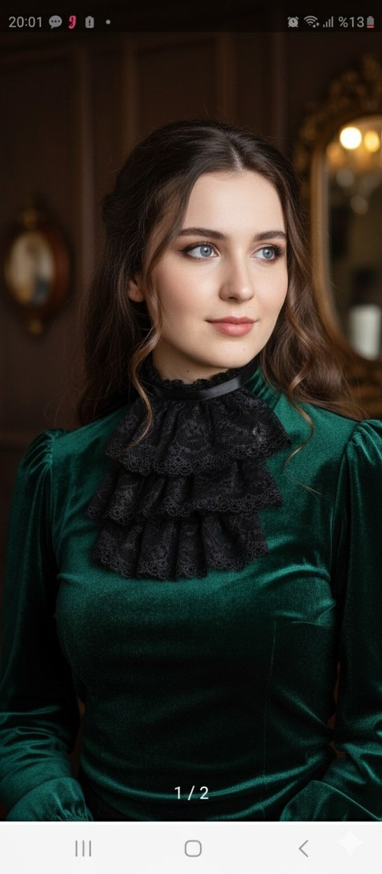 Klasik zarafeti yansıtan siyah, işlemeli ve fırfırlı gotik broş, ofis kullanımı için uygundur.
