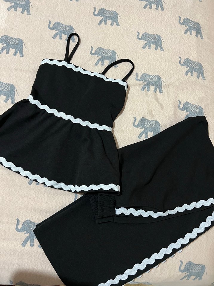 Siyah Fırfırlı İnce Askılı İkili Takım