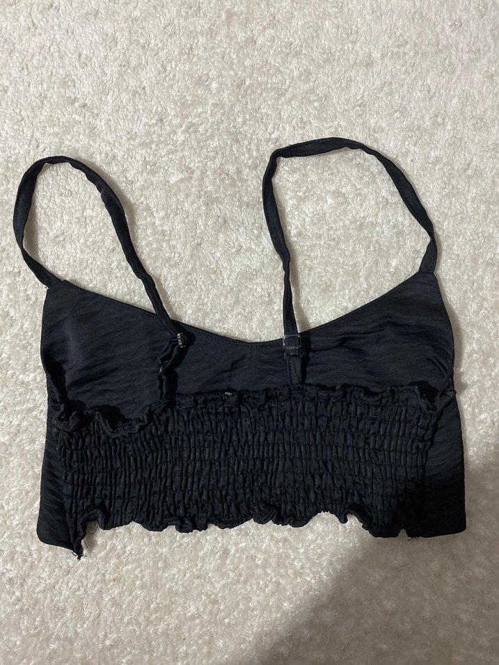 Siyah Fırfırlı Keten Askılı Bustiyer