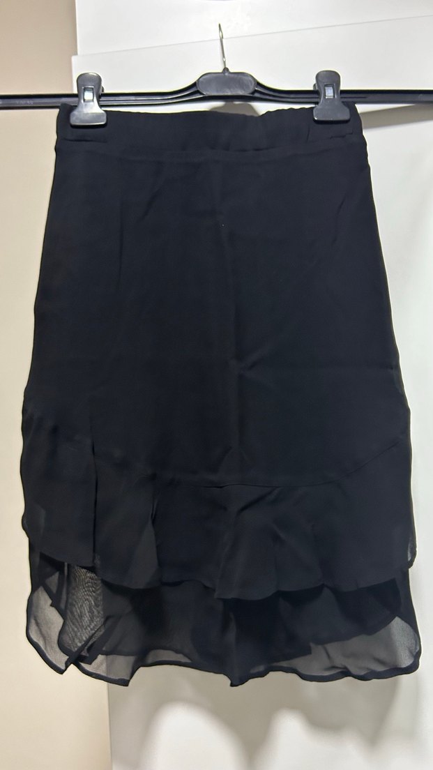 Siyah Fırfırlı Midi Etek