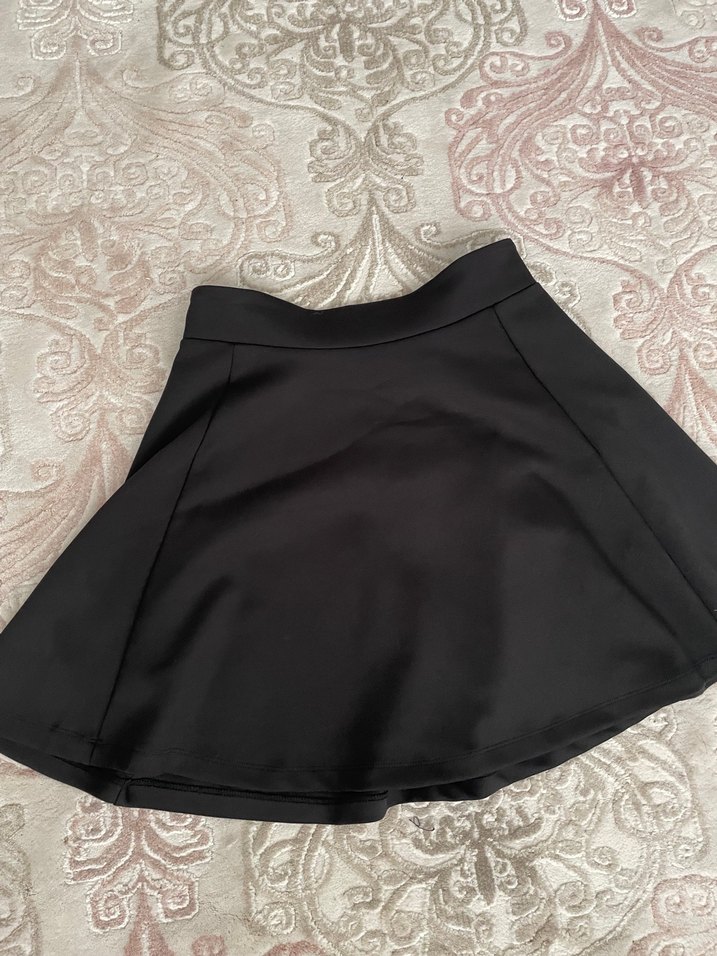 Siyah renkte, düz ve sentetik kumaştan yapılmış, fit kesim ve fırfır detaylı midi mini goth etek. Romantik akşamlar için uygun.
