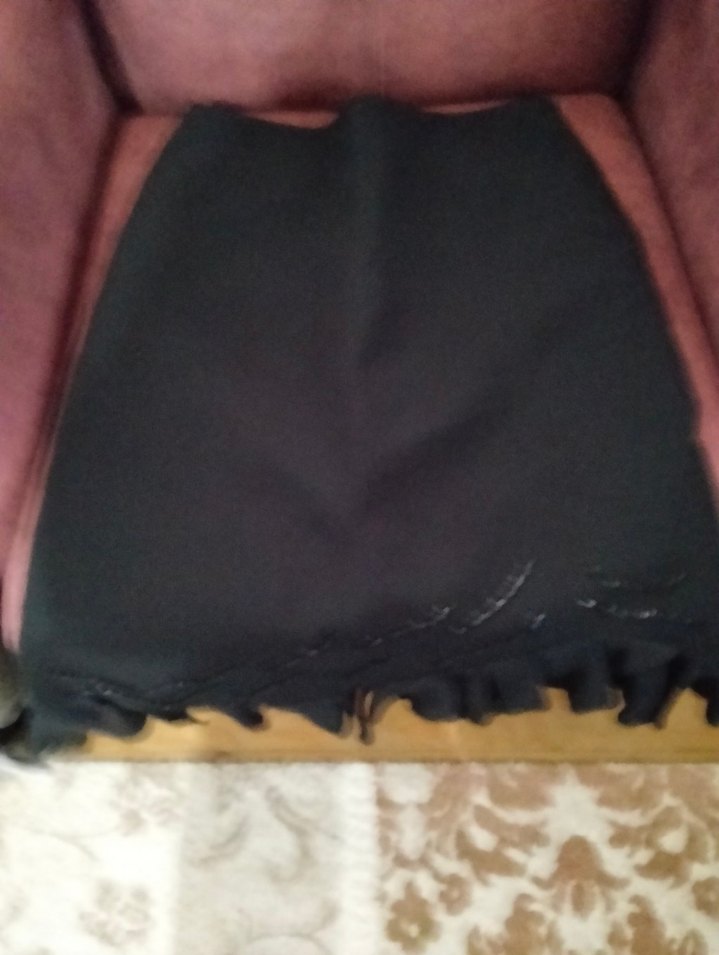 Düz siyah ve sentetik kumaştan yapılmış, ucu fırfırlı, vücuda oturan midi etek. Gotik ve avangart tarzlar için uygundur, romantik buluşmalar için ideal.
