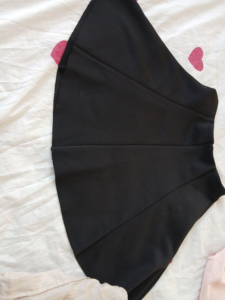 Siyah, sentetik kumaştan yapılmış, fırfır detaylı ve vücuda oturan midi mini etek, tarzda günlük kullanım için uygundur.