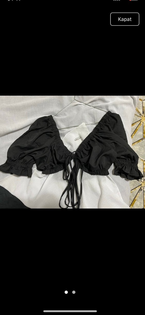 Siyah, sentetik kumaştan yapılmış, v yaka, askılı ve fırfırlı detaylara sahip mini, büstiyer Fiyatda yardımcı olurum