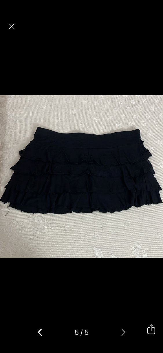 Pamuk kumaştan yapılmış, fırfırlı detaylı siyah dar kesim mini etek. Gotik stil için uygun, dış mekan kullanımı için ideal. Beachwear diye geçiyor ben akşam yemeğinde de kullanmıştım. Şortlu değildir