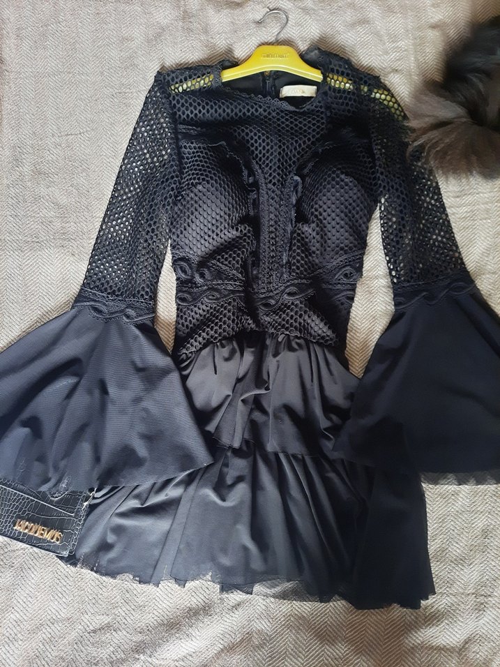 Siyah, straplez yaka ve işlemeli desenli, vücuda oturan mini elbise. Fırfır detaylı ve strappy kollu, gotik tarzda, açık hava etkinlikleri için uygun. Ürün hiç giyilmemiştir. Tasarım ürünler satan bir butikten almıştım fakat hiç giyilmemiştir. Dolapta askıda file yerinde bir sökük oluştu annem dikti resime ekledim. Detaylara sahip bir elbise olduğu için belli olmuyor. Etiketinde 40 beden yazıyor ama 36-38 beden uyumlu. Markası zara değildir. Lütfen inceleyiniz iade kabul etmiyorum