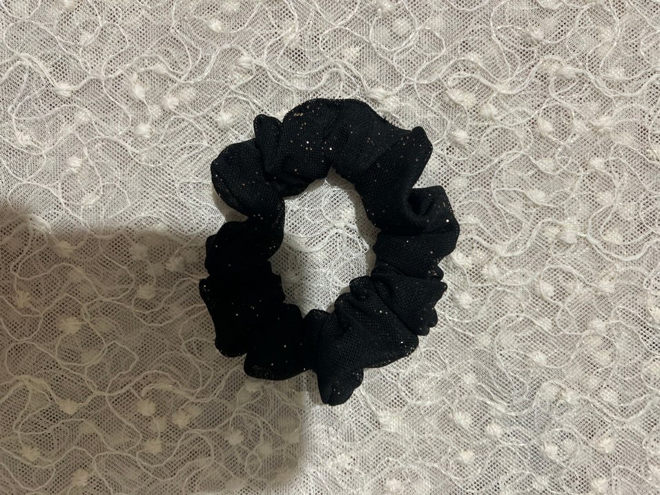 Siyah örgü kumaştan yapılmış, fırfırlı detaylara sahip saç lastiği. Goth ve Parisian avant-garde tarzını yansıtır.