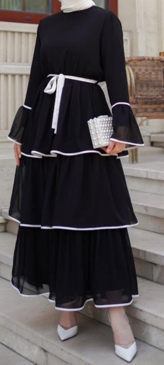 Siyah Fırfırlı Uzun Elbise
