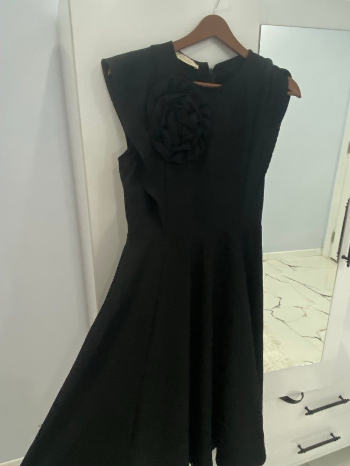 Siyah Fırfırlı Uzun Kollu Kadın Elbise