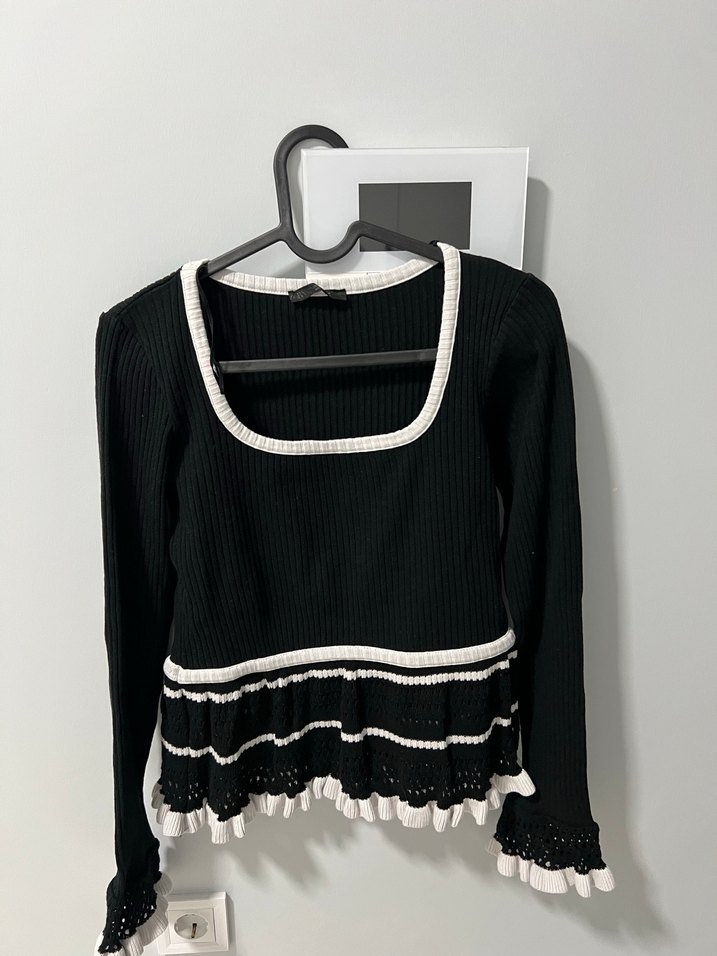 Siyah Fırfırlı Uzun Kollu Kadın Triko