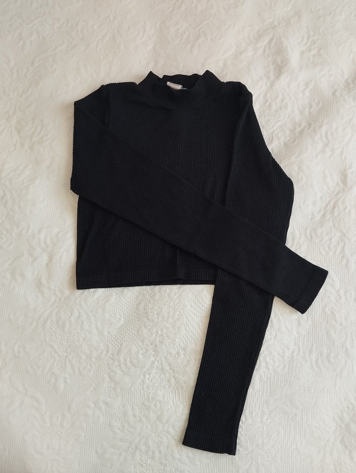 Siyah, fitilli dokulu, uzun kollu ve boğazlı kadın kazağıdır. Yumuşak ve sıcak kumaştan, normal midi boyunda, sade ve desensiz tasarıma sahiptir.