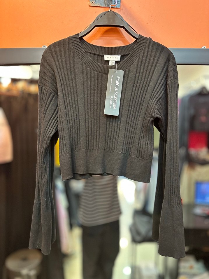 Bu siyah triko kazak, uzun kollu, fit kesim ve bisiklet yaka tasarımı ile günlük sokak stiline uygundur. Midi boy ve fitilli dokusu şık bir görünüm sağlar.