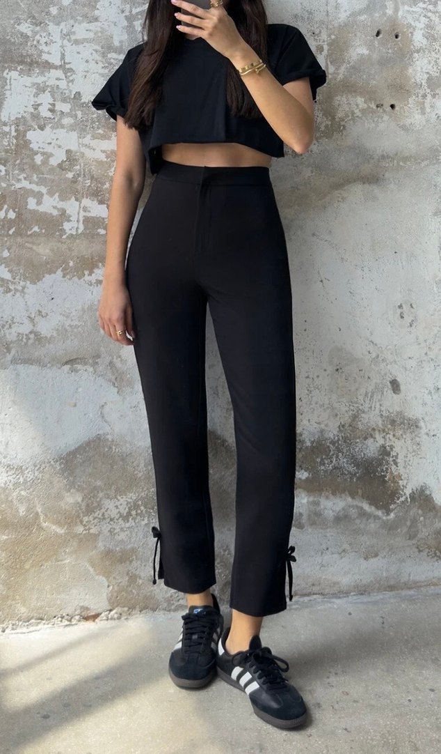 Siyah Fiyonk Detaylı Kadın Kumaş Pantolon