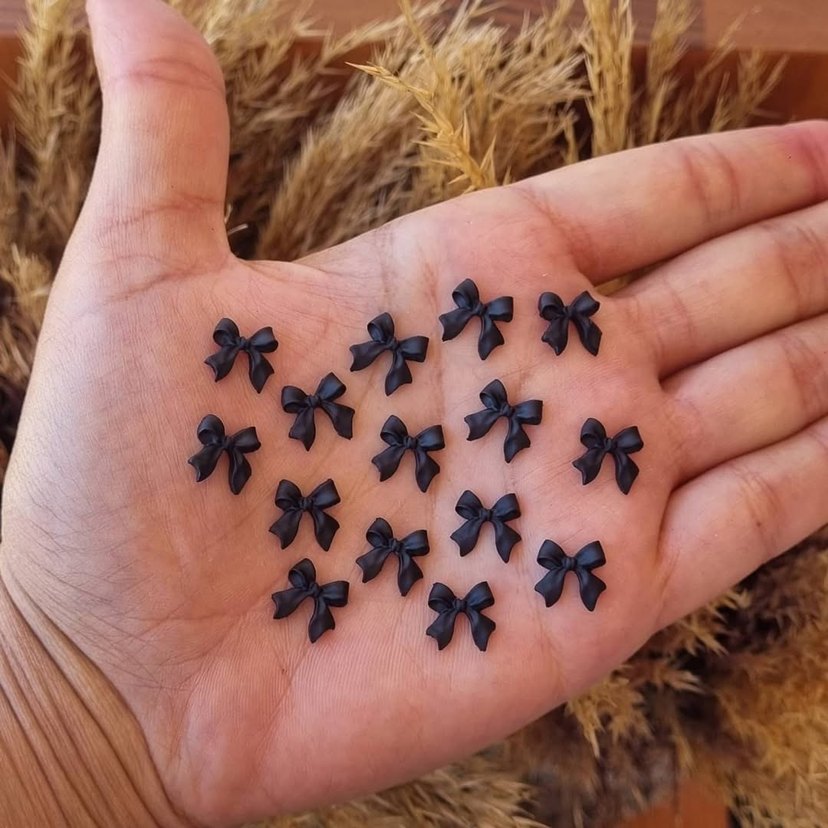 Mat siyah renkte, küçük fiyonk şeklinde tırnak süsleri, tırnaklara zarif bir dokunuş katmak için uygun. tanesi 10₺