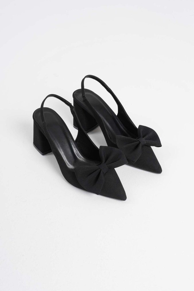 Siyah renkte, blok topuklu ve fiyonklu kadın ayakkabısıdır. Kauçuk malzemeden yapılmıştır ve modern klasik stile sahiptir. Ofis kullanımı için uygundur.