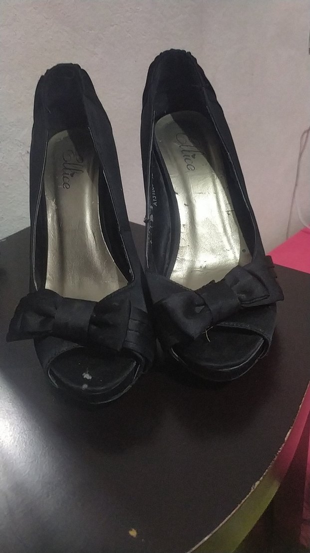 Siyah yüksek topuklu kadın ayakkabısı, fiyonk detayı ve gotik tarzıyla cesur bir görünüm sunar. Kauçuk malzemeden üretilmiştir.