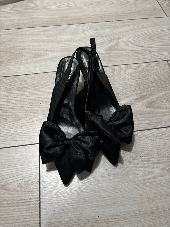 Siyah Fiyonklu İnce Topuklu Kadın Gece Ayakkabısı
