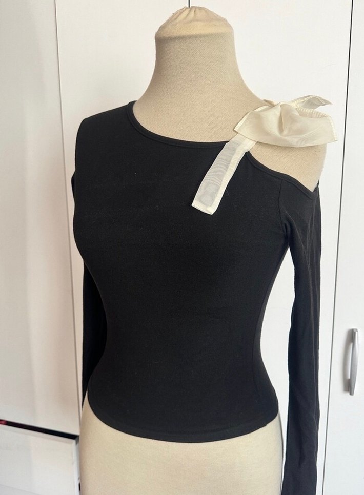 Siyah Fiyonklu Uzun Kollu Straplez Bluz