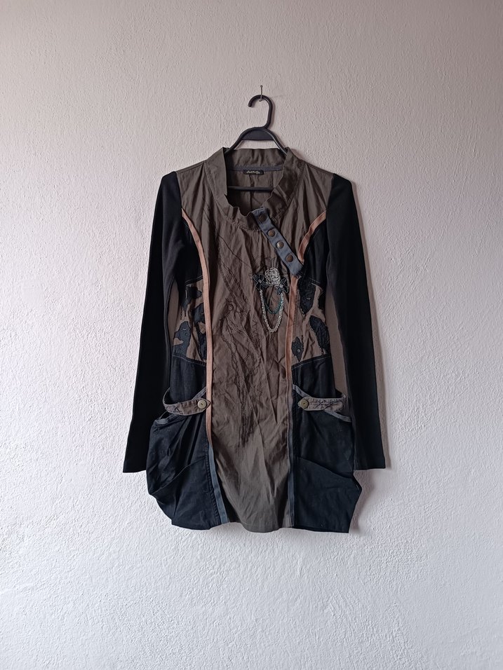 Angels Never Die marka uzun kollu, yüksek yakalı, baskılı desenli özel tasarım gotik elbise. Günlük kullanıma uygun koyu tonlarda. İki koltuk arası genişliği 43 cm, boyu 81 cm dir. Yakası çıtçıtlı kapanır. Geniş torba cepleri ve boncuk nakış işleme detayı bulunur. S beden. Yüzde 95 Pamuk 5 elestan. Bu sayfadaki ürünler, ek gelir amaçlı satışta değildir. İkinciel butik satış fiyatlarıdır ve bu sebeple fiyat sondur. Sadece toplu alımlarda indirimden faydalanabilirsiniz. (üç ürün yüzde 5, beş ürün yüzde 15) Aynı gün kargoya verilir. Instagram: @namaste.vintage