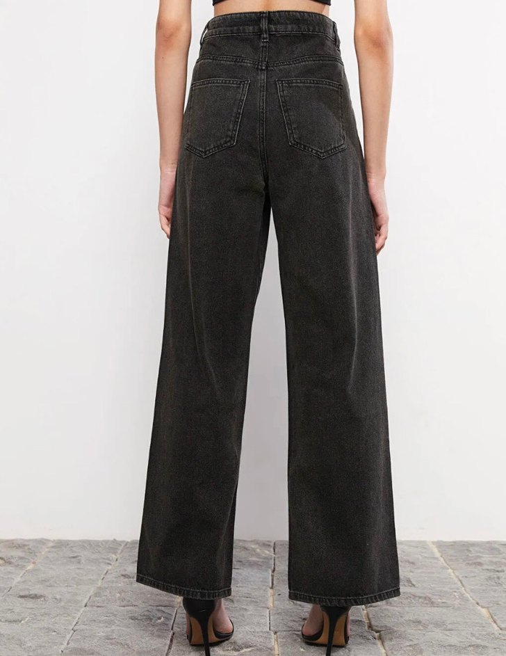 Siyah Geniş Kesim Kadın Denim Pantolon