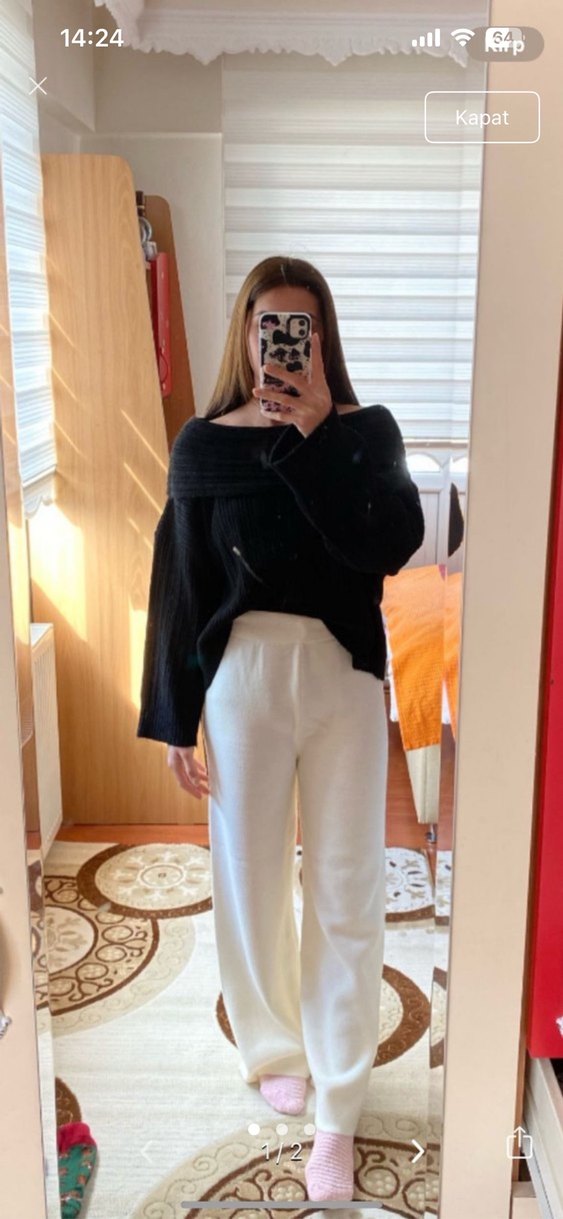 Pamuk siyah triko, geniş kesim, uzun kollu ve kayık yaka isteyene takım da satılıktır